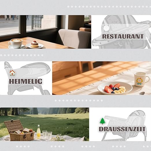 Hergestellt aus robustem Polypropylen und Edelstahlrohr, kombiniert der YALION Hochstuhl Langlebigkeit mit geringem Gewicht – ideal, wenn du den Stuhl häufig zusammenklappen oder transportieren möchtest- Dank des klappbaren Designs ist er platzsparend verstreubar und somit auch ein sinnvoller Begleiter für kleine Küchen oder Reisen.