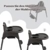 Ein besonderes Highlight: das verstellbare Tablett mit abgerundeten Ecken schützt dein Kind und passt sich spielend der Wachstumsphase an. Für zusätzliche Stabilität sorgen rutschfeste Füße, die ein Kippeln wirkungsvoll verhindern.