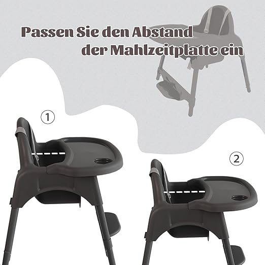• VERSTELLBARE FUSSSTÜTZE:Damit Ihr Kleines bequem sitzen kann (Fußstütze ist auch abnehmbar);der Tisch und das Tablett können jederzeit abgenommen werden.