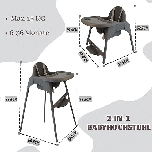 • 2-IN-1 VERSTELLBARER HOCHSTUHL BAB: kann als Hochstuhl oder als kleiner Stuhl genutzt werden – ab 6 Monaten bis ca. 3 Jahre (max. 15 kg) geeignet.