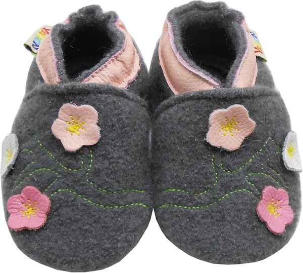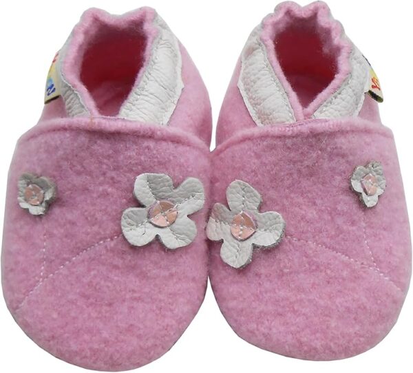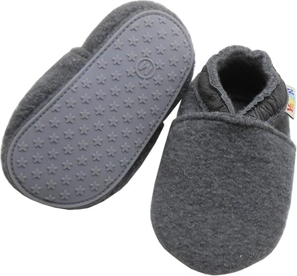 Ein weiterer Vorteil: Woll-Lauflernschuhe sind sehr leicht. Babys können sich frei bewegen, ohne durch schweres Schuhwerk eingeschränkt zu werden. Flexible, rutschfeste Sohlen geben dabei den nötigen Halt auf glatten Böden, sodass die ersten Schritte sicherer und stabiler gelingen. Auch Eltern profitieren: Wollschuhe lassen sich in der Regel leicht an- und ausziehen, was den Alltag erleichtert.