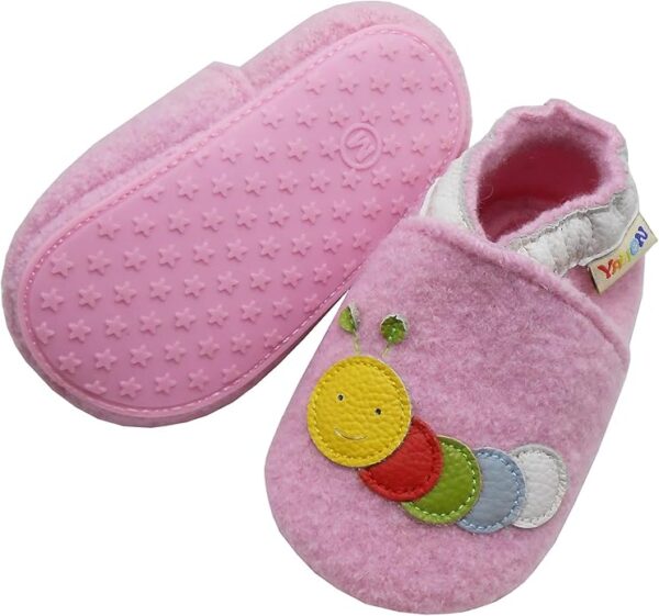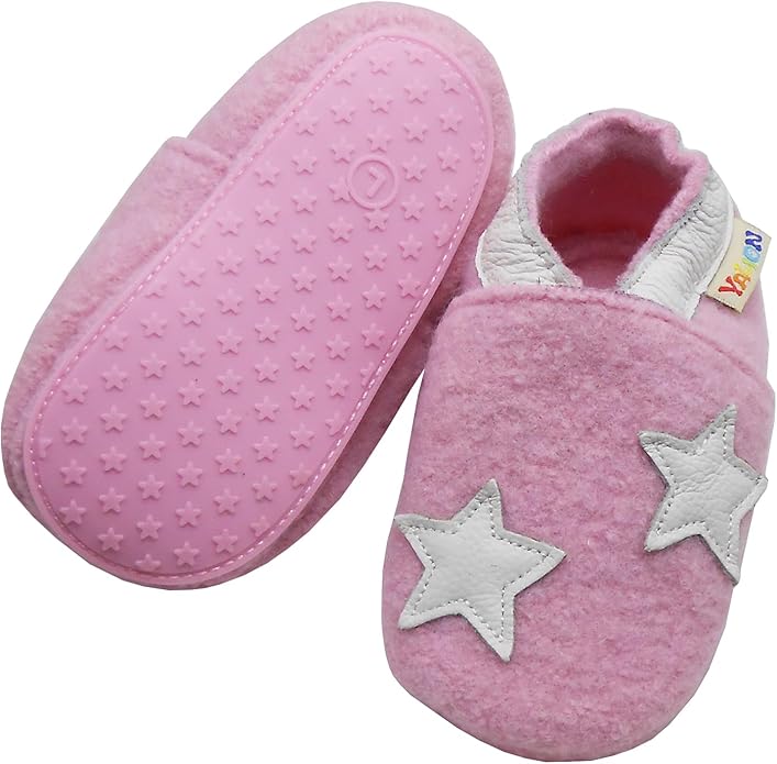 WOLLE: Dieser niedliche Hausschuh für Kinder wurde aus warmer Wolle hergestellt und besonders atmungsaktiv und hautfreundlich. ANTI-RUTSC: Die feste Sohle aus Gummi gibt optimalen Halt und verspricht absolute Trittsicherheit für jedes Kleinkind. VERSCHLUSS: Die Baby Woll-Krabbelschuhe mit elastischem Knöchelriemen für einfaches An- und Ausziehen, für mehr Stabilität und Mobilität. LEICHT ZU REINIGEN: Bitte mit einem feuchten Tuch reinigen und an einem belüfteten Ort trocknen lassen. SUITABLE: Woll-Krabbelschuhe yalion perfekt für Pre-Walkers, Infant Toddlers, bietet die notwendige Traktion und hervorragende Unterstützung von Krabbeln zu gehen und sogar laufen.